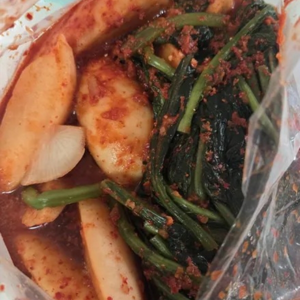 무가 너무 커요.. 무는 덜 절여져서 싱거워서 양념맛으로 먹었는데 짜지 않아서 전 괜찮았어요