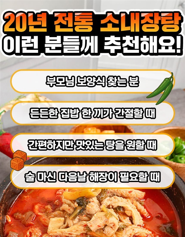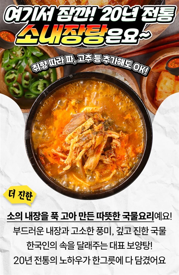 | 품목 또는 명칭 | 20년 전통 국물이 찐한 소내장탕 |