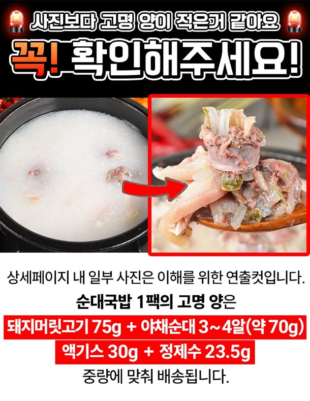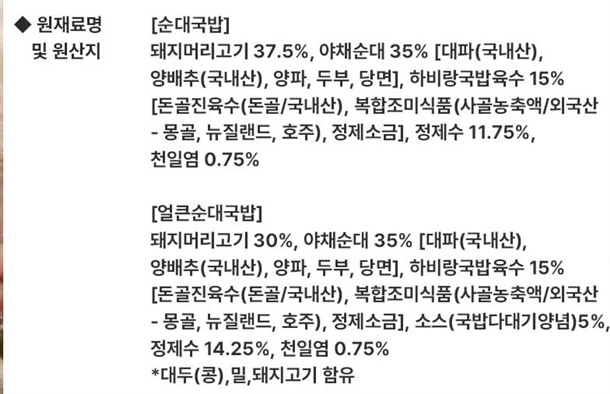 | 품목 또는 명칭 | 진한 육수 할매 돼지 순대국밥 2종 |