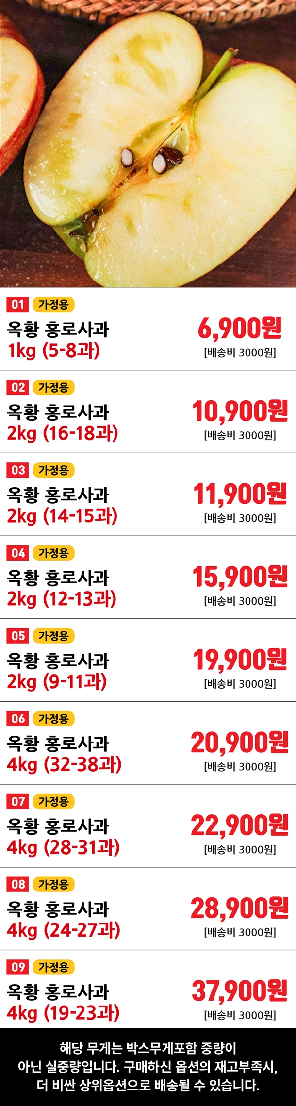 | 품목 또는 명칭 | 햇 가정용 옥황 홍로사과 |