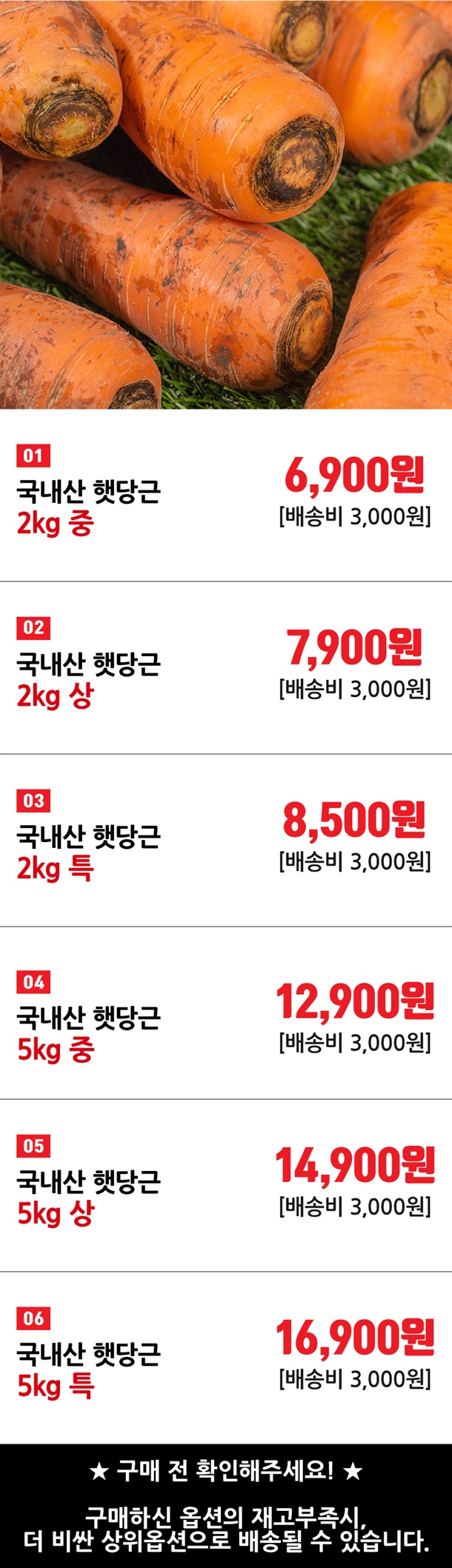 | 품목 또는 명칭 | 국내산 햇당근 |