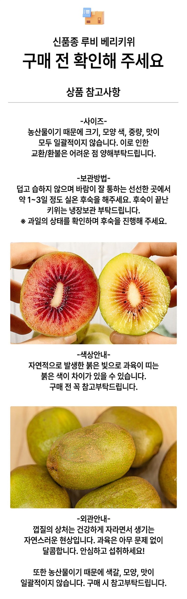 · 재판매가 불가한 신선식품인 경우, 상품 하자 외의 단순변심(맛, 향, 식감 등)으로 인한 교환 및 반품이 불가능합니다.