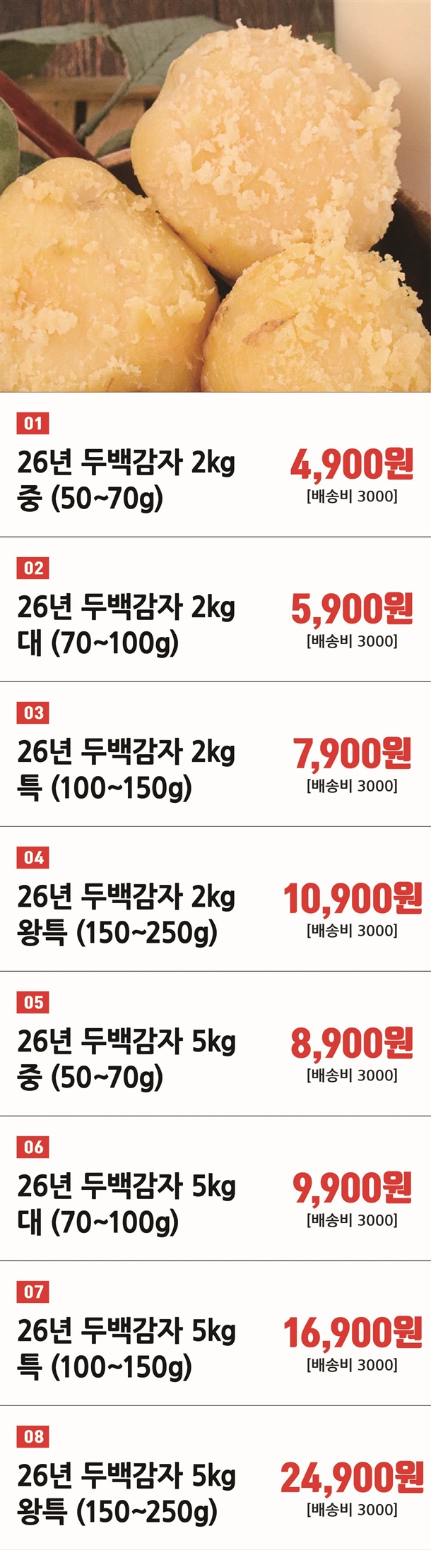 | 품목 또는 명칭 | 26년 국내산 햇 두백감자 |