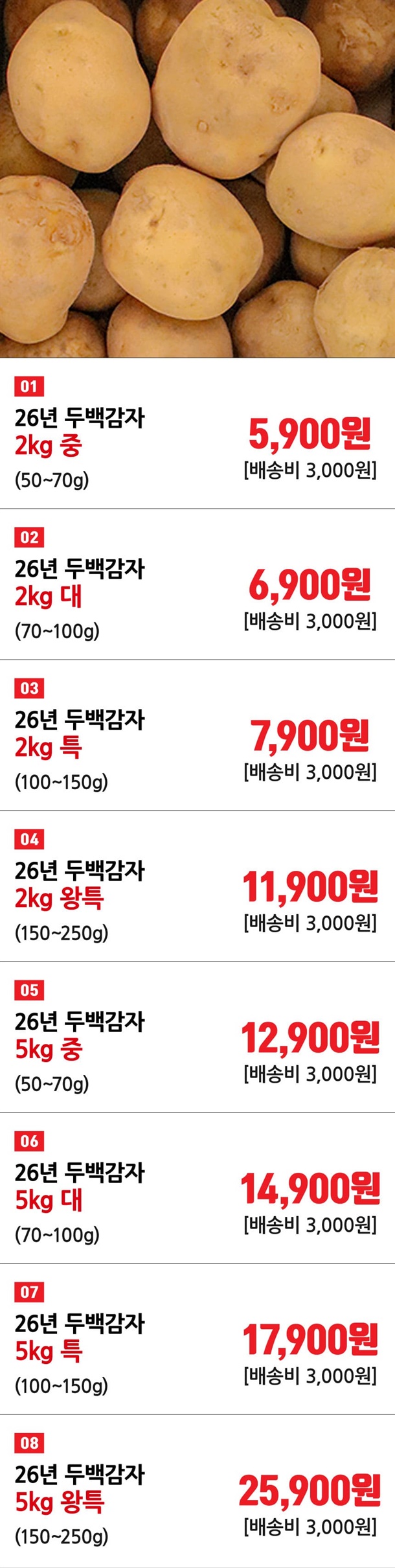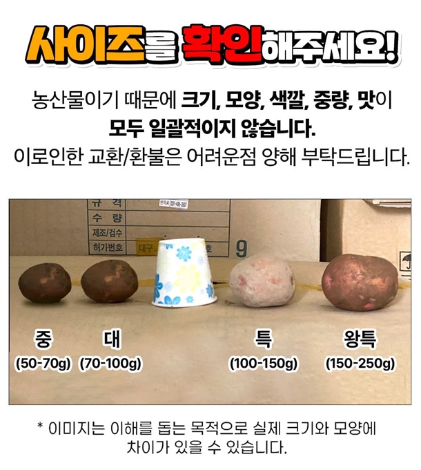 | 품목 또는 명칭 | 26년 국내산 두백감자 |