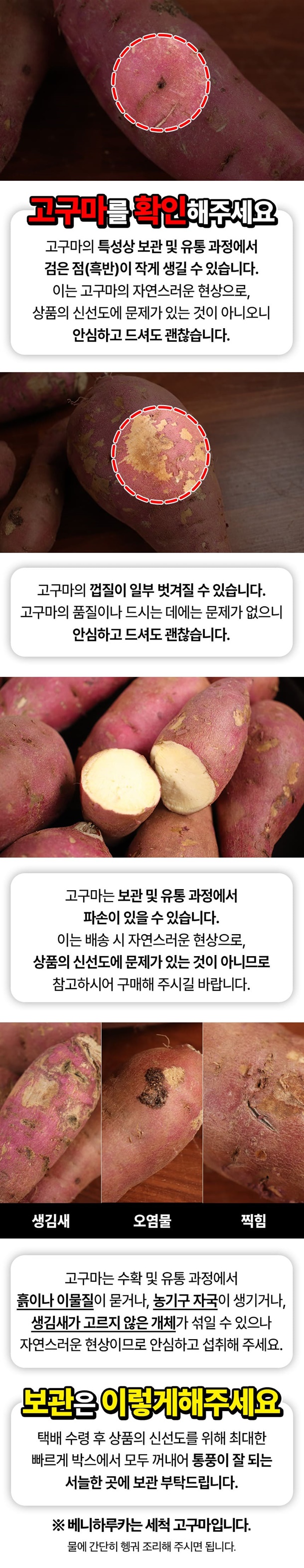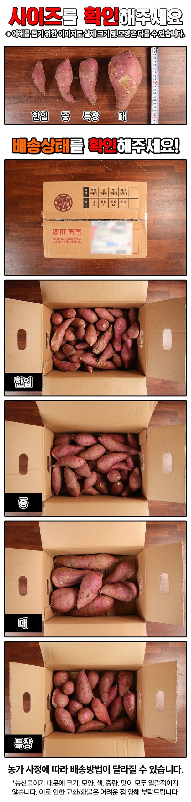 | 제조연월일, 소비기한 또는 품질유지기한 | 농산품이므로 소비기한이 없습니다. 빠른 섭취 권장드립니다. |