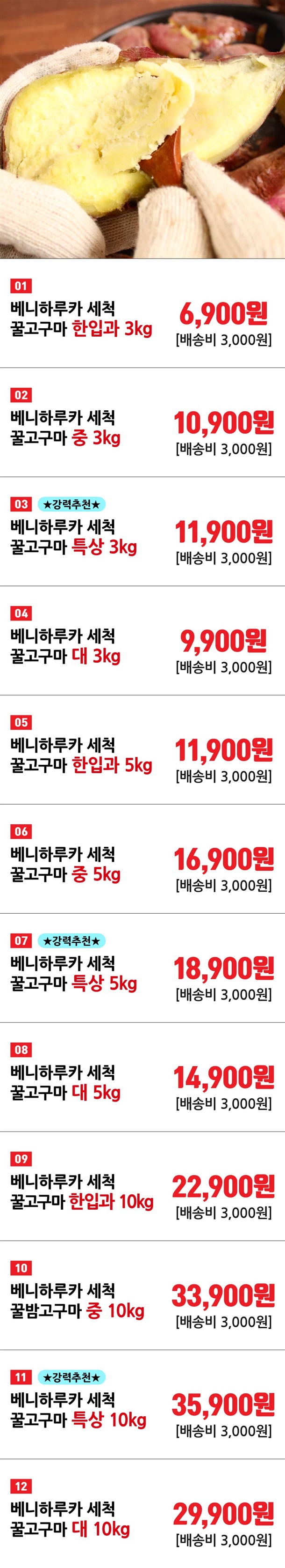 · 배송비 : 3,000원(1개 마다 기본배송비 반복 부과)