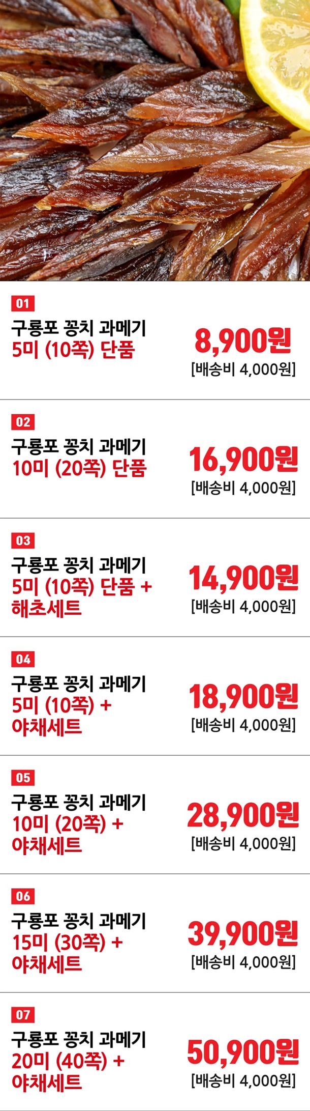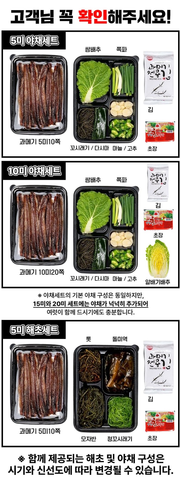| 보관방법 또는 취급방법 | 과메기:냉동보관 / 야채:냉장보관 |