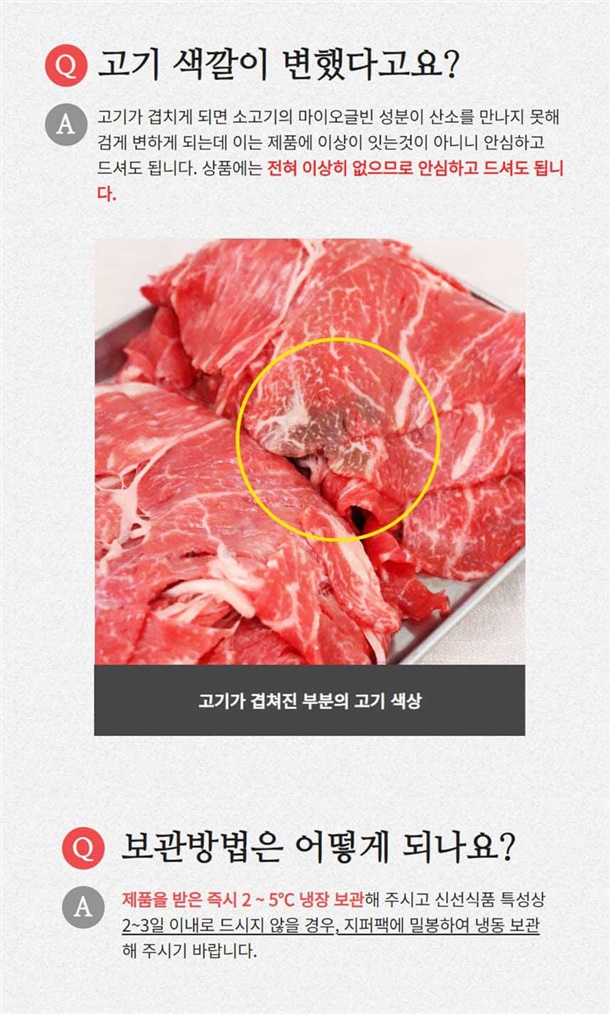 보관방법 또는 취급방법 | 냉장보관 3일까지 가능 (냉동 보관 후 냉장할 경우 핏물이 나올 가능성이 높음) |