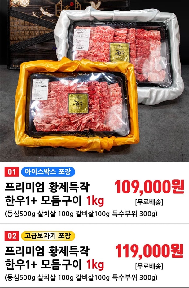 품목 또는 명칭 | 프리미엄 황제특작 한우1+ 모듬구이 |